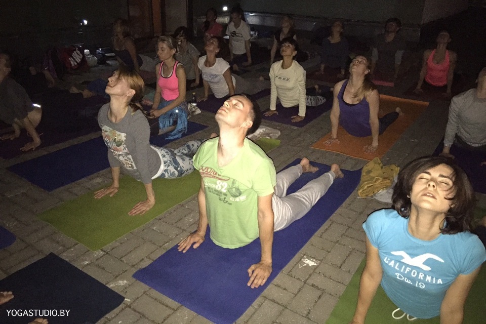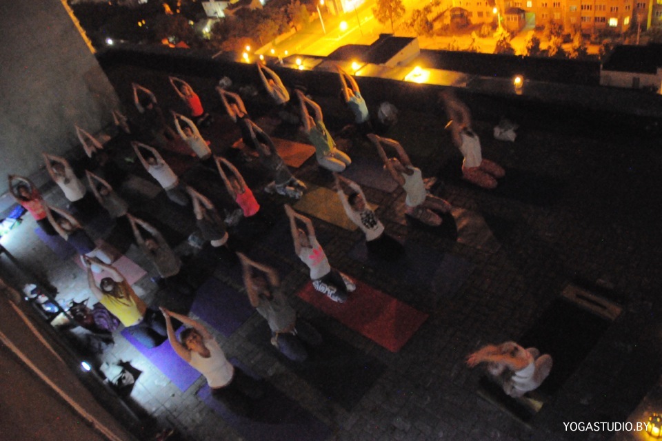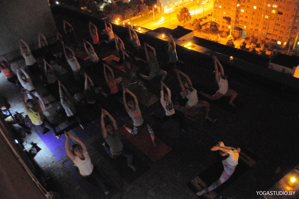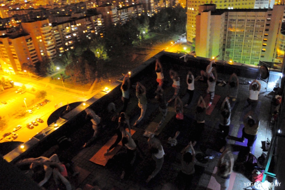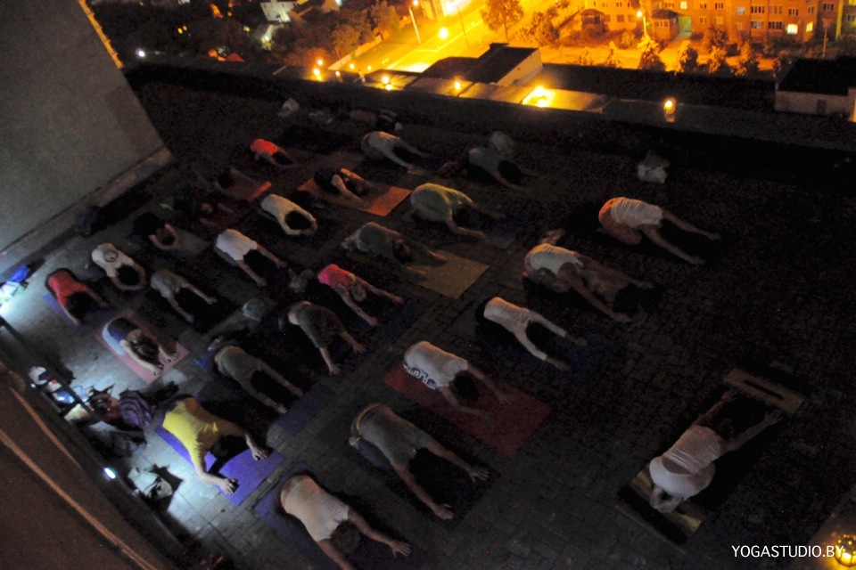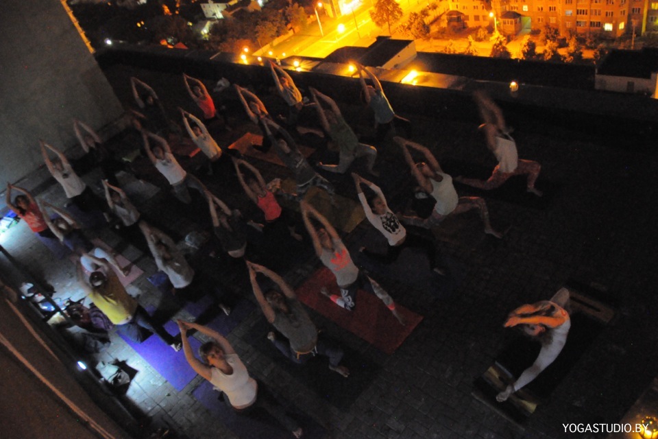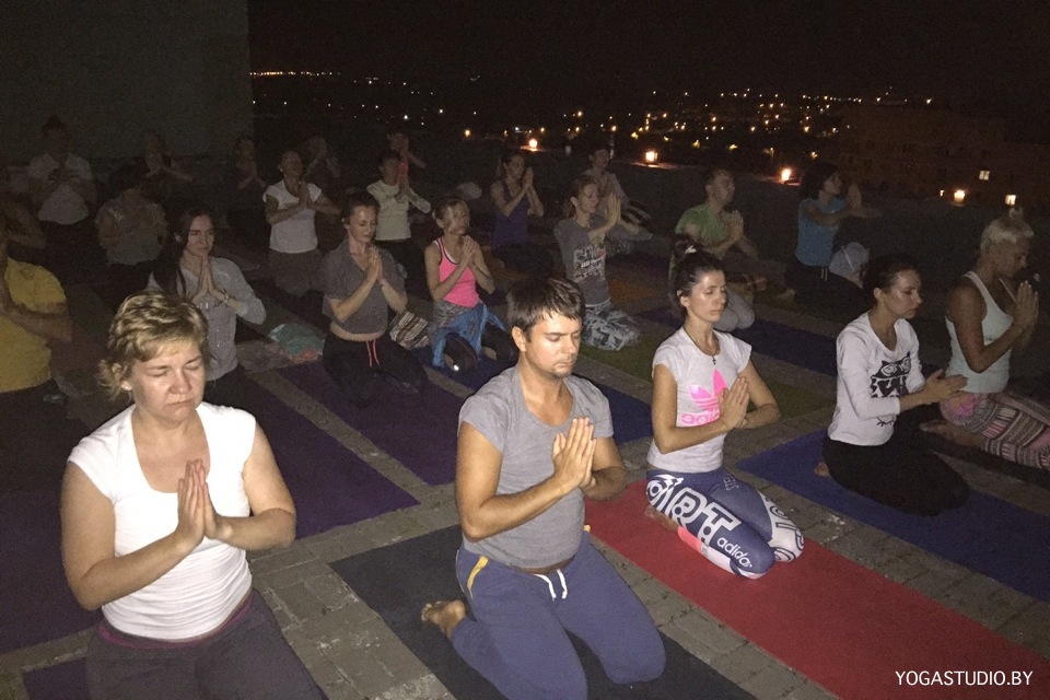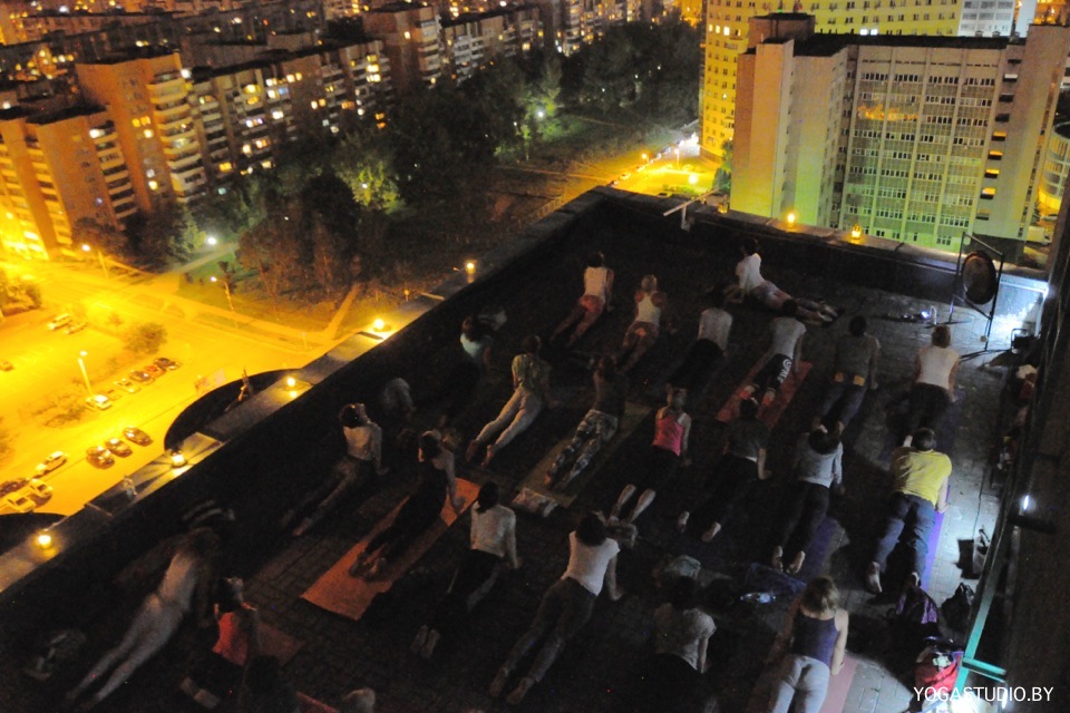 В этот раз мы собрались на крыше с видом на ночной Минск, чтобы приветствовать ее величество Луну, выполнив таинственную и чарующую Чандра Намаскар в потоке положительных эмоций. Лунная практика отличалась спокойствием и неторопливостью. Мы любовались видами ночного города и наслаждались умиротворением мерцающих звезд, а Луна казалось снисходительно нам улыбалась.