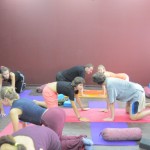 12 сентября йога-студия «Аджна» встретила классом «йога-терапия», на котором можно было не только позаниматься, но и задать волнующие вопросы квалифицированному преподавателю йоги и врачу. После этого наступило время плавной, симметричной и неспешной йоги Айенгара, а потом — концентрирующей и увлекающей парной йоги. И в заключение — состоялось занятие «пранаяма для начинающих», для желающих познакомиться с основными дыхательными техниками йоги. И в течение всего дня пришедшие в студию могли попить чай со сладостями и пообщаться с преподавателями и учениками студии.