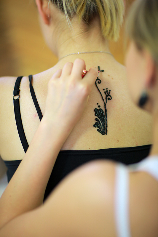 В июне в йога-студии состоялся очередной мастер-класс по менди (рисунку хной), который провела преподаватель йоги Дарья Прудникова. Все, кто пришел на мастер-класс, познакомились с историей возникновения менди, узнали рецепт приготовления пасты из хны в домашних условиях, и украсили свои тела живописными узорами и орнаментами.