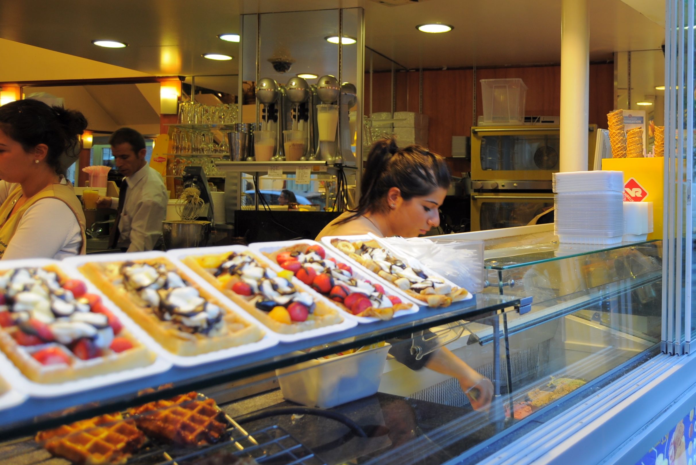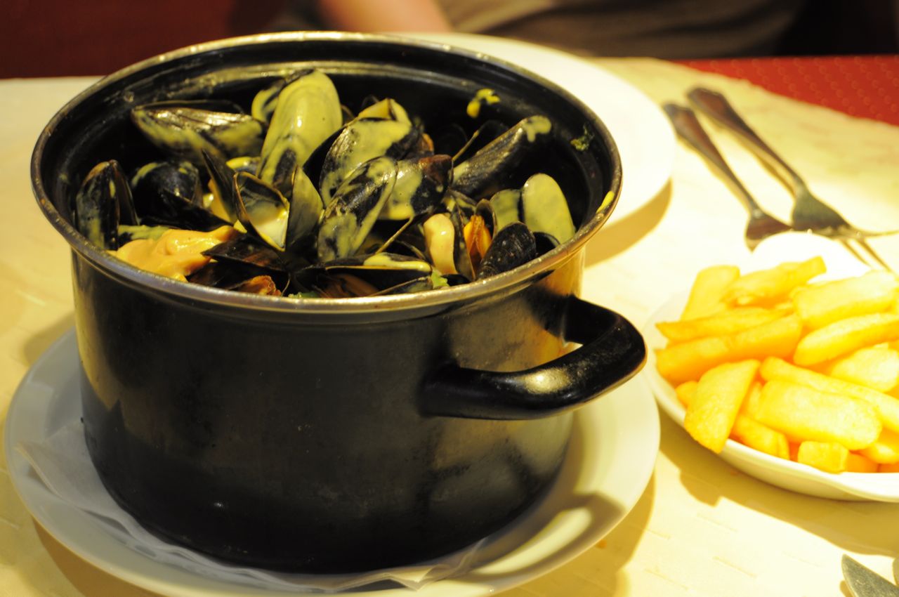 Наибольшее количество ресторанов находится в районе улицы Мясников (Rue des Bouchers ). Это старое название этой улицы, со времен, когда там были мясные ряды. Сейчас никаких мясников там нет, если не считать поворов, которые готовят мясные блюда. Кстати о блюдах и, вообще, о бельгийской кухне. Я даже не представляла, сколько блюд подарили бельгийцы всему миру. Именно Бельгия считается родиной картофеля фри и бельгийских вафель. Те самые Льежские и Блюссельсекие вафли, которыми так гордятся немцы, оказывается вовсе не немецое изобретение. Всем известные бельгийские шоколадные конфеты и, конечно, национальное блюдо Бельгии – мидии с картофелем фри — Moules & Frites. И в конце концов, оказывается, Бельгия славится пивом. В стране варится более 400 сортов пива, кроме этого, каждая пивоварня разливает пиво в собственные бутылки, а еще — каждому сорту пива положен особый бокал. В общем, любителям гастрономических изысков будет чем побаловать себя.