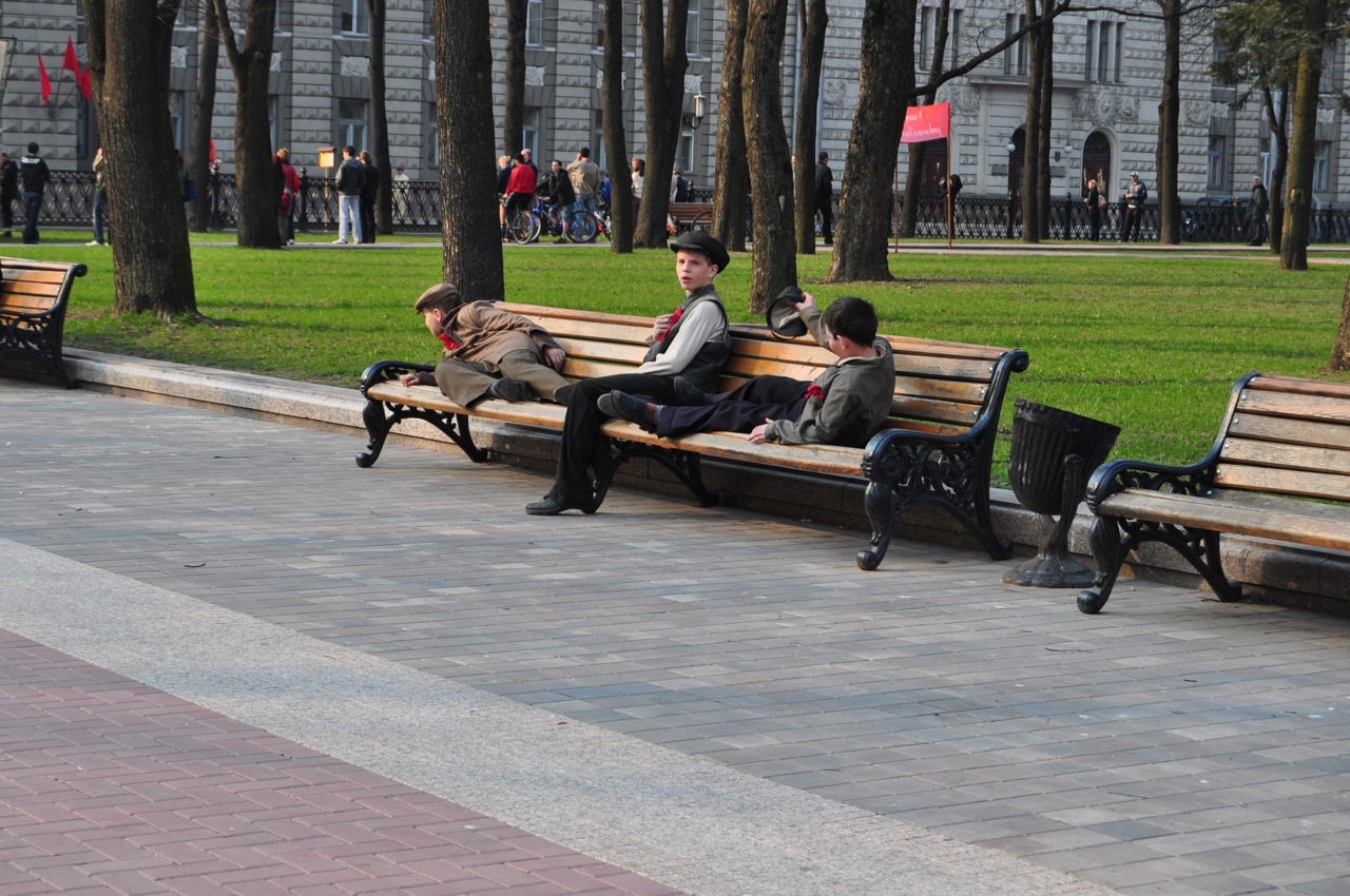 Далее все и правда как в тумане, было раннее утро и бессонная ночь в плацкартном вагоне. Но добрые райские силы (!) напоили меня мятно-лимонным чаем и уложили досыпать последние сны. Так что пробудилась я в добром расположении духа и уже в нужном месте и в нужное время. Минск. Чистенько, ухожено, ровные дороги, первые намеки на аккуратные газончики вдоль главных улиц. Мне повезло… с первого дня пребывания город был в солнце, а воздух в весне, настоящей состоявшейся весне. Все вроде бы как у нас (в России), та же архитектура, наследие правящих режимов («сталинский ампир» перестроечные «новостройки», современные здания), те же автомобили на дорогах, правда не так много и от этого не покидало ощущение, что все еще рано и автолюбители спят, либо уже разъехались по дачам, пользуясь хорошей погодой. Те же: реклама, столбы, кафешки, подростки одетые в духе своего мировозрения. И что-то одновременно-очевидное не то!!!! нерусское!!! странно-понятные надписи на указателях: вместо УЛИЦА- ВУЛИЦА, аптека- АПТЭКА, гостиница- ГАСЦЫНИЦА))) И уж совсем странная вывеска, окончательно убедившая меня, что это не рай вовсе «супчик дня — 19 200 рублей». В раю нет денег, а если б и были, то не такие гигантские)