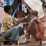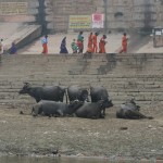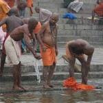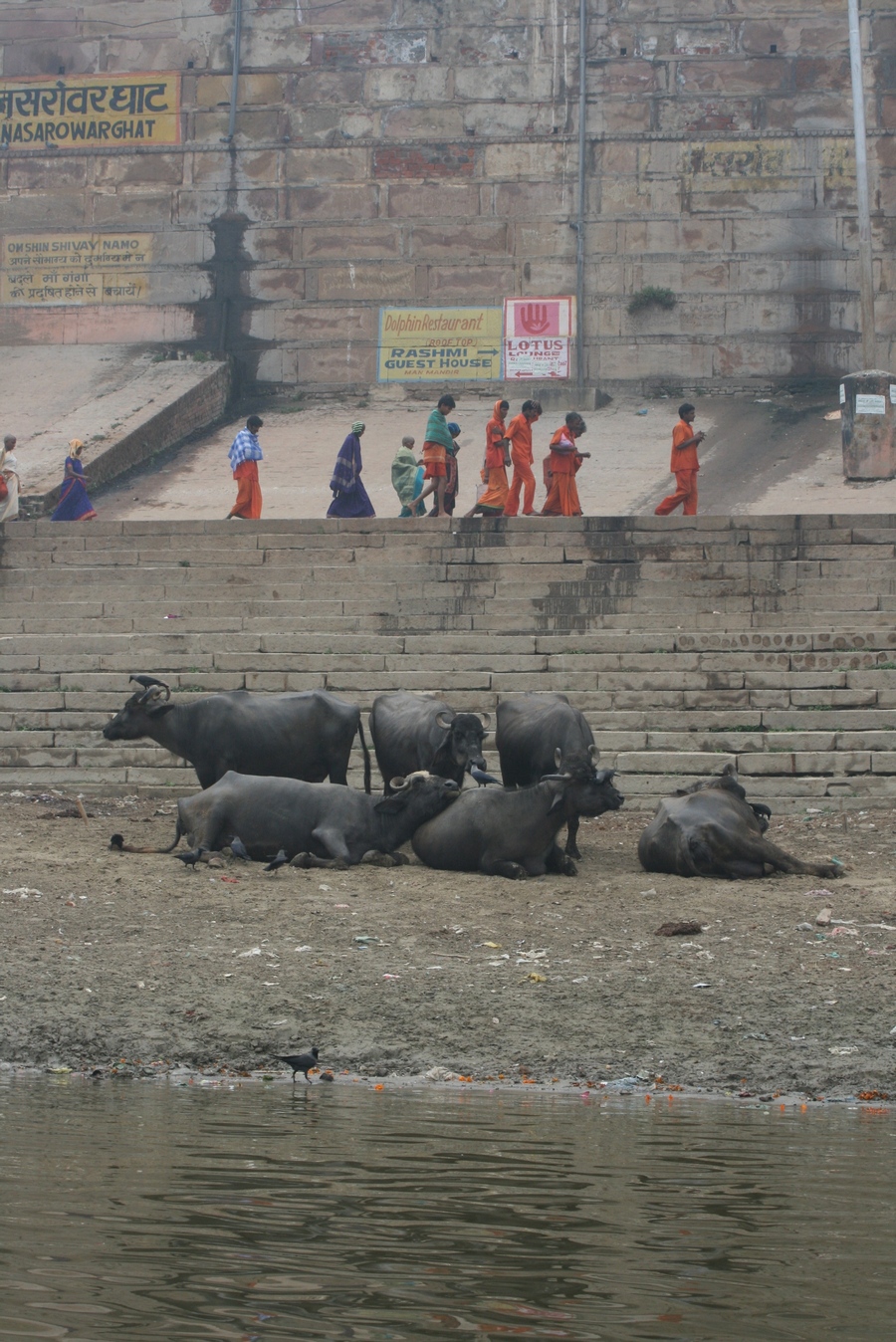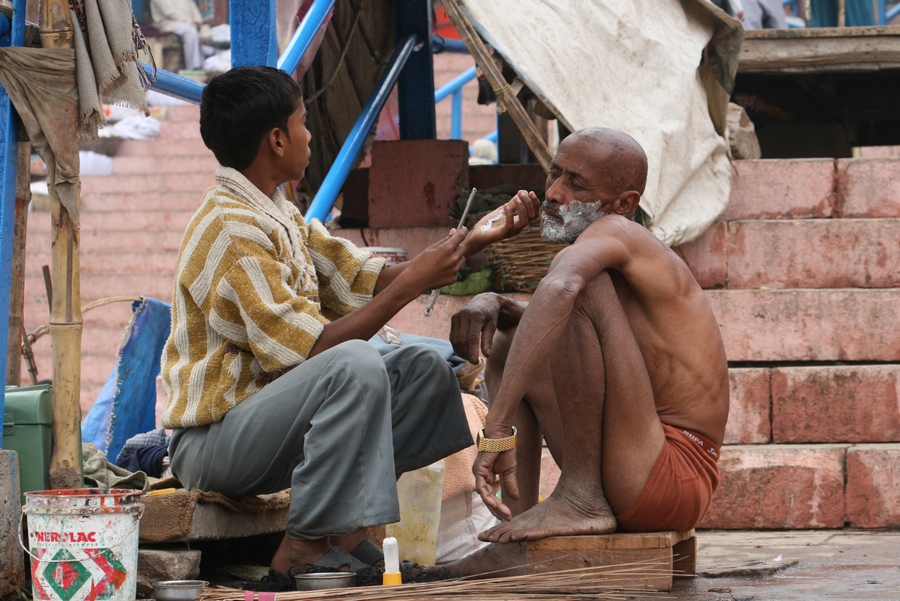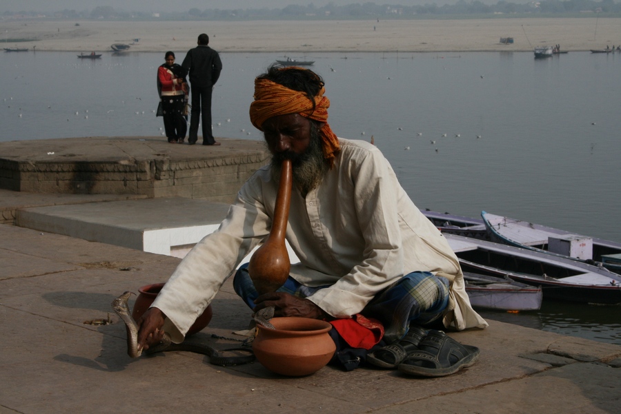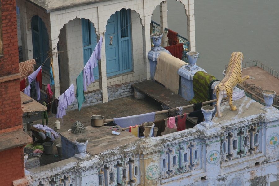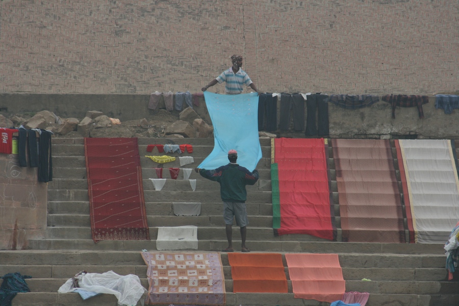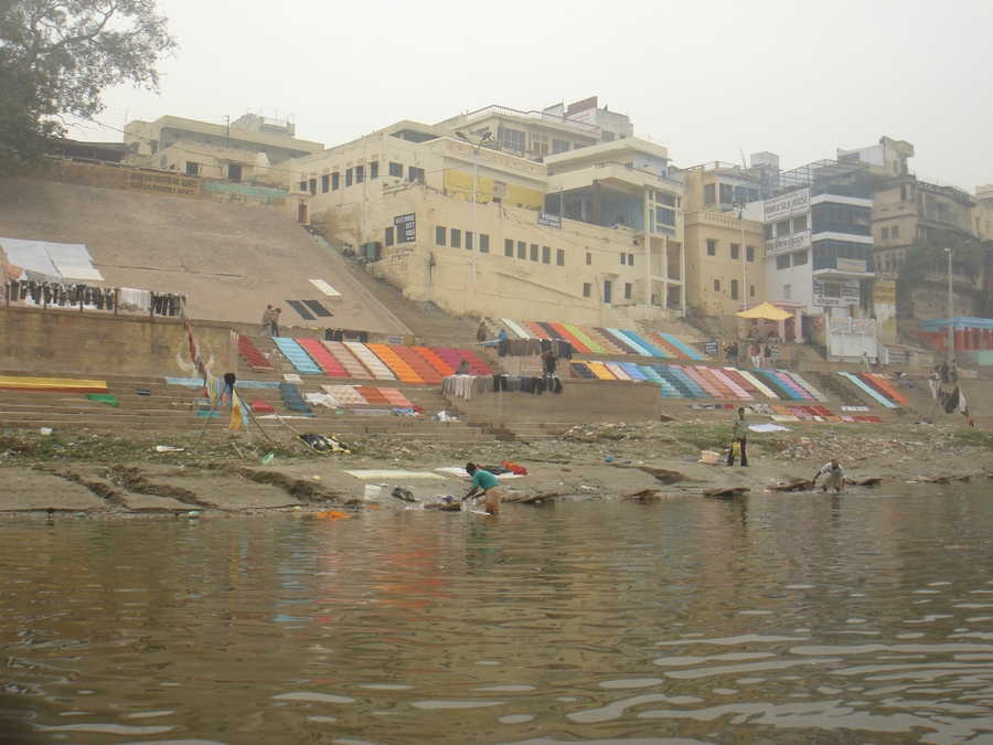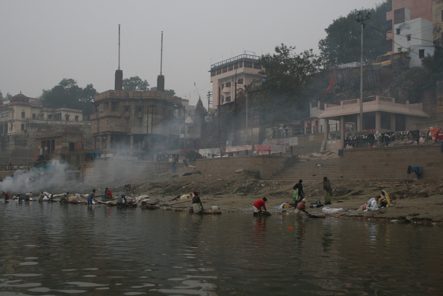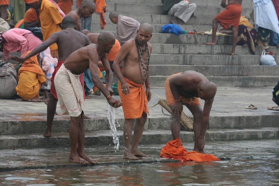 С рекой в Варанаси связано все. Зеленоватая мутная вода с плавающих мусором, принимающая в себя ежеденевно десятки трупов и настоящую городскую и ливневую канализацию с загаженных улиц, является святой рекой для огромного количества людей. В ее священных водах ежедневно совершают омовение тысячи людей. Местные жители умываются в Ганге и пьют из реки воду. И при мне, лодочник, рассказывая о том, что в реку идет канализация, проплывая мимо священного гата, без доли смущения зачерпнул в пригоршню воду из реки, омыл лицо и проглотил.